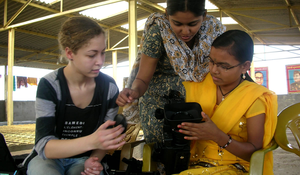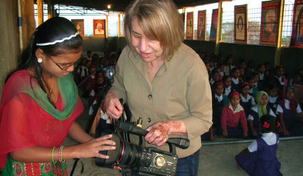 The next day, after a brief tutorial on handling the video equipment, Jayshree was ready to begin shooting her film. The ear to ear smile on her face when she rolled the camera for the first time was priceless.